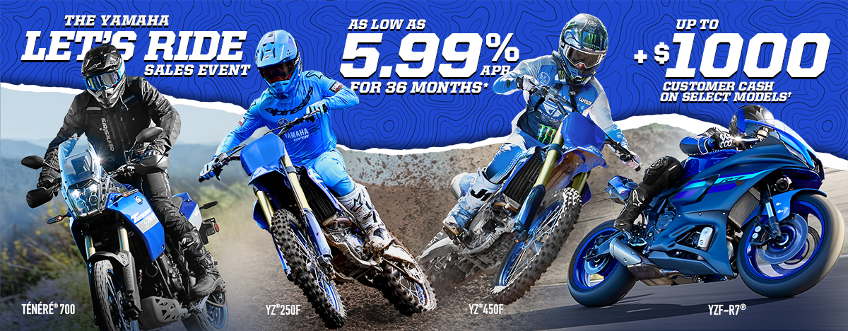 *Offer available on approved purchases of new 2023 – 2026 Yamaha Motorcycles made on the Yamaha Credit Card issued by WebBank. Offer valid 10/1/2025 – 12/31/2025. Account must be